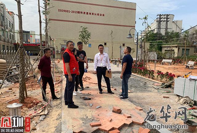 ▲福城街道福民社区纪委现场监督“政治体检”问题整改——督查口袋公园的建设进度。