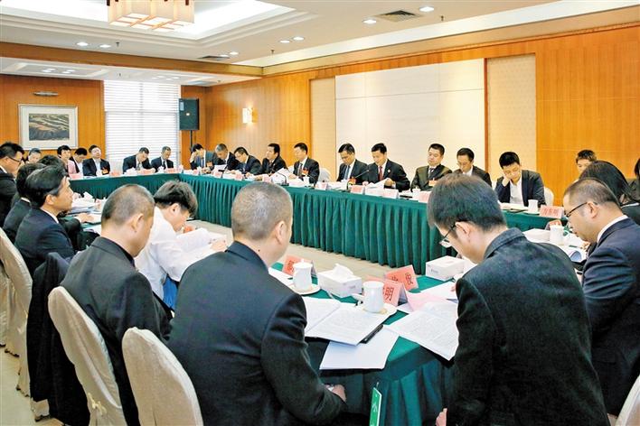 第八代表团(机关二团)分组讨论现场,党代表们热议党代会报告。