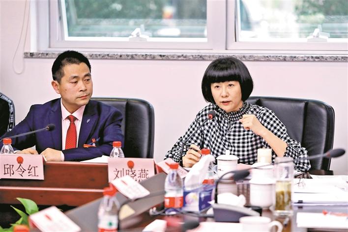 市人大代表刘晓燕(右)在龙华代表团小组会议上发言。