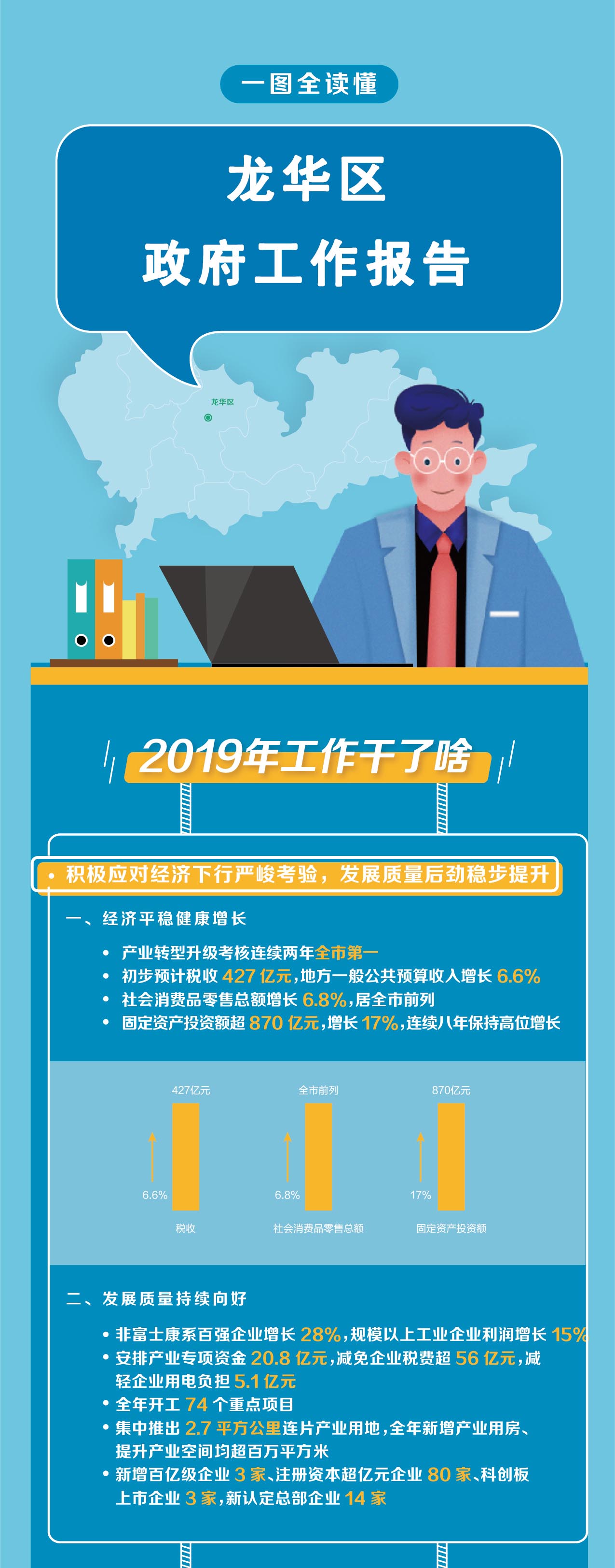 区政府工作报告显示,2019年龙华区按照市委市政府和区委的各项工作部署,团结和依靠全区人民,攻坚克难、砥砺奋进,有力推动龙华经济社会发展取得新突破,各项事业迈上新台阶。