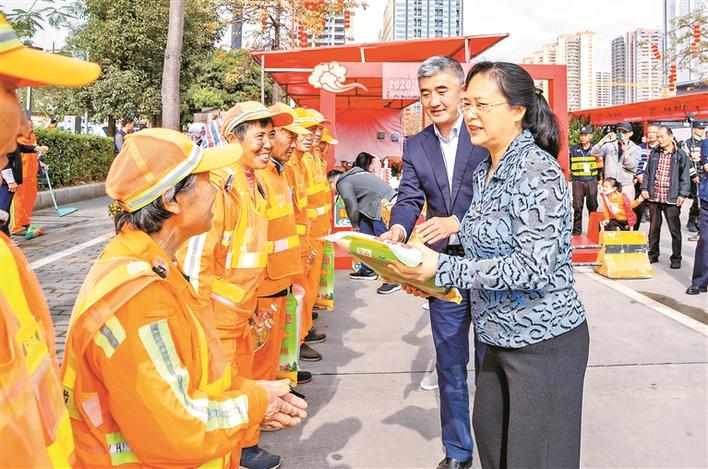区委书记杜玲向环卫工人送上新春祝福和亲切问候。