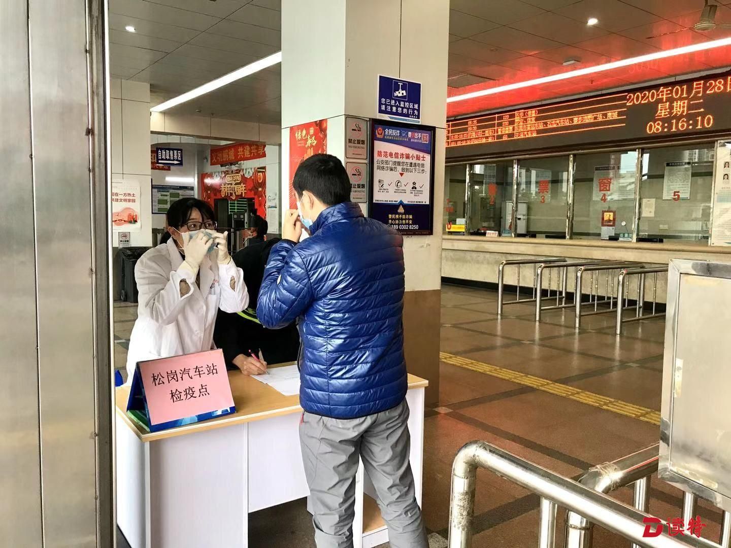 医护人员在松岗汽车站检疫点教市民正确佩戴口罩