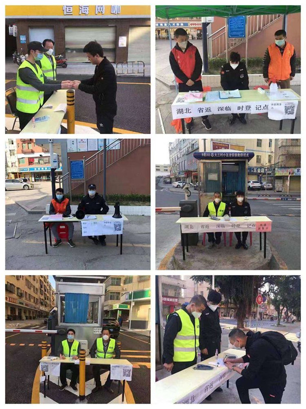福民社区工作站联合警区进行新型肺炎疫情防控行动,逐园逐村逐旅店监督防疫工作落实情况,社区内7个居民小区、豪亚花园、福安小区出入口都设有测温登记点,相关防疫工作措施落实到位。社区内5家旅店经现场检查,其中3家营业(忠翔酒店式公寓、祥云酒店、宏远旅馆),1家暂未恢复营业(悦兴旅馆春节期间放假至2月1日),1家已倒闭(盛鑫旅馆)。已营业的各旅店落实体温实时监控制度,落实湖北省抵(返)深人员扫码登记,建立湖北省来龙华人员台账,落实公共场所佩戴口罩制度。