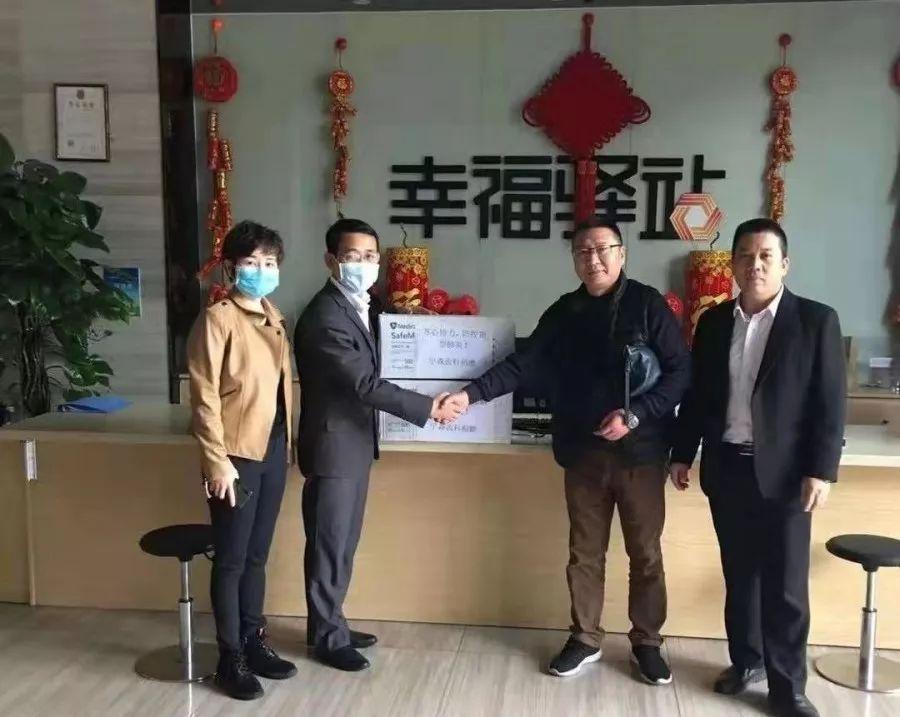 1月26日,福民社区金域九悦花园7栋业主宁森先生的牙科诊所主动捐赠了1000个口罩给小区居民使用。