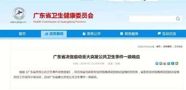 为防控新型冠状病毒感染的肺炎,广东省启动几级响应机制?