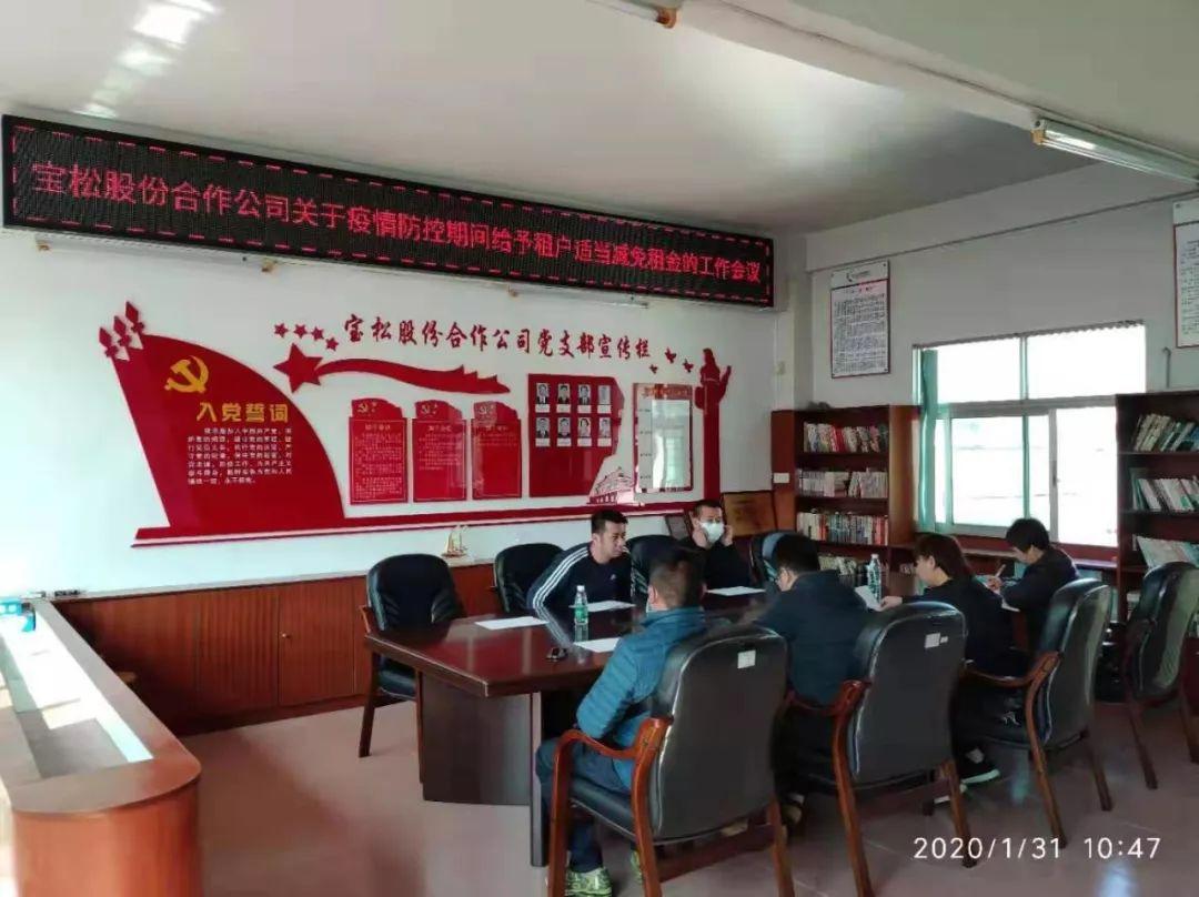 于2020年1月31日下午2点30分在股份公司办公室召开“三会”,经公司三会决议通过,于二月份疫情期间对承租本公司集体物业的企业和商户酌情减免10天租金,共计减免租金222066元。