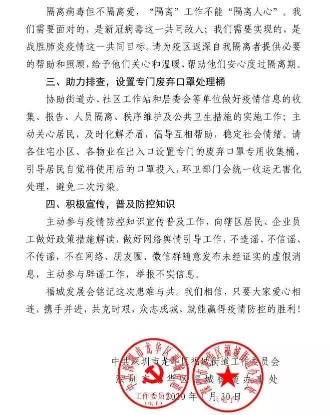 《福城街道致辖区各界人士和朋友共同参与防疫工作倡议书》