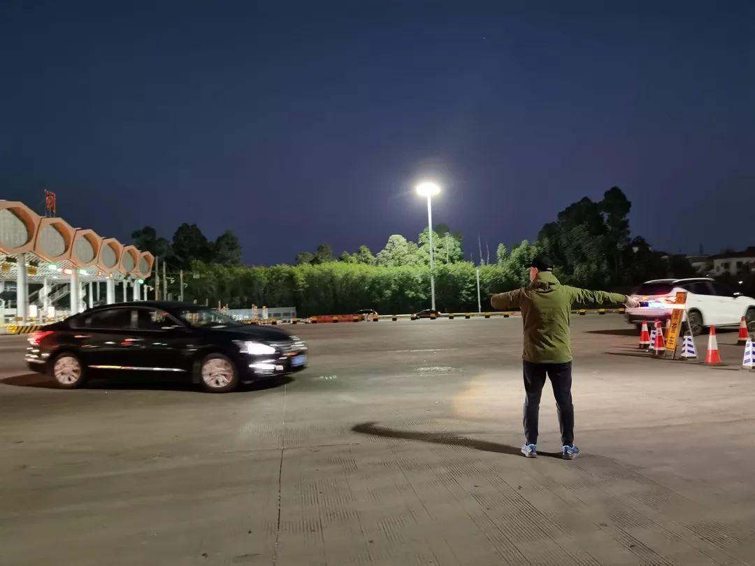 深圳梅观高速观澜收费站,2020年1月29日夜间至1月30日白天,农历正月初五、初六,正迎来返程高峰,在车辆进出口,在这里驻点的除了三班倒测量体温的医务人员、维持秩序的交警,还有手持电光指挥棒忙碌的身影,他们就是——龙华教育人。