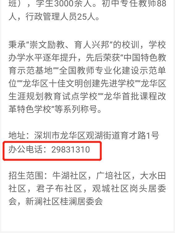 2.如果有需要联系学校,可点击“龙华教育”公众号-资讯速递-教育地图-街道-学校,查看办公(值班)电话。