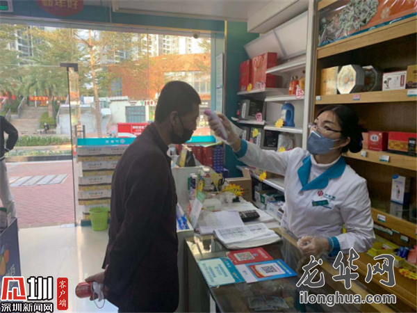 福城街道大水坑社区龙新国药房店长万先生表示,作为工作生活在福城街道的居民,他觉得在防疫工作面前,每个人都有他自己的责任,他协助社区做好返深人员登记、测温,也算是为社会出一点点微薄之力。据悉,该要店在大水坑社区就有三家分店,每天接待进店顾客约300人次,每位进店顾客,他们都会主动问顾客是否来自疫区,提醒疫区返深人员做好登记、隔离,给他们讲解防疫措施。