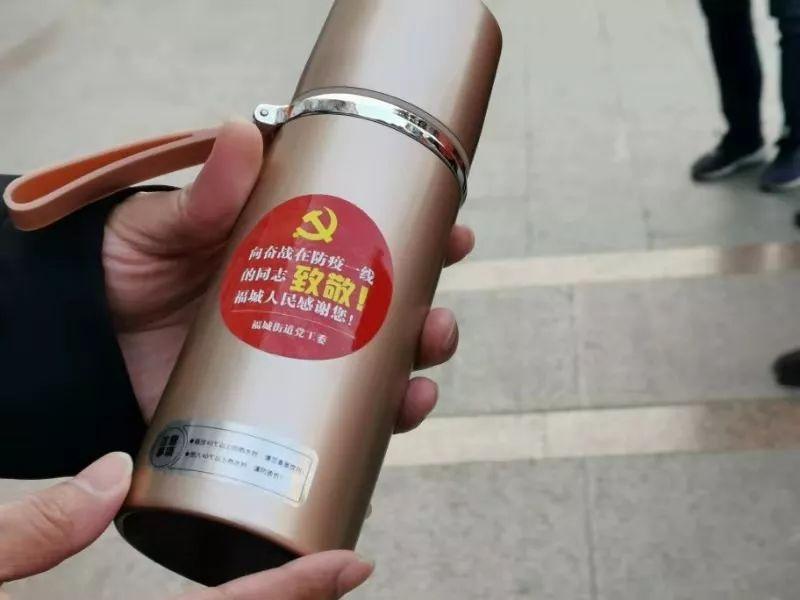 用保温杯装好的姜茶,最是暖身暖心,让抗疫一线的同志倍感温暖。