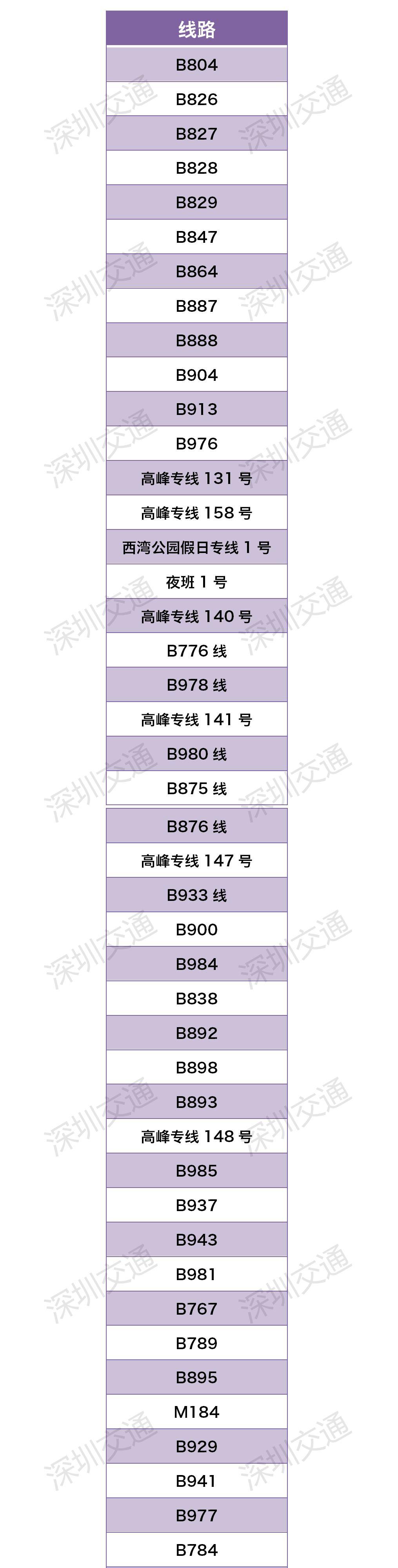 二、部分支线巴士、高峰线、夜班线、跨市运行的公交线路暂停运营。