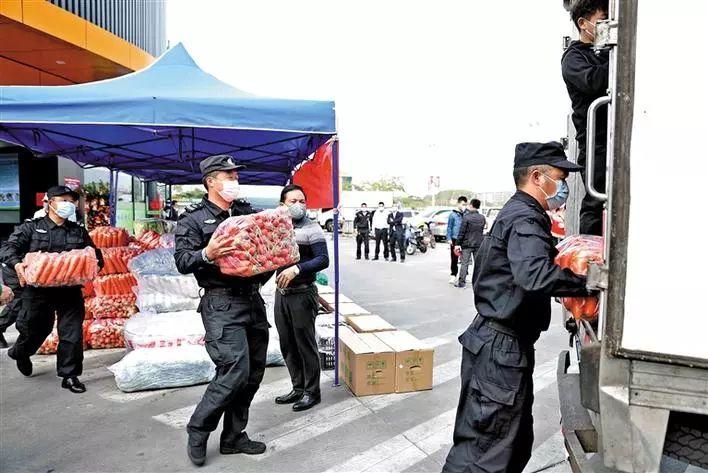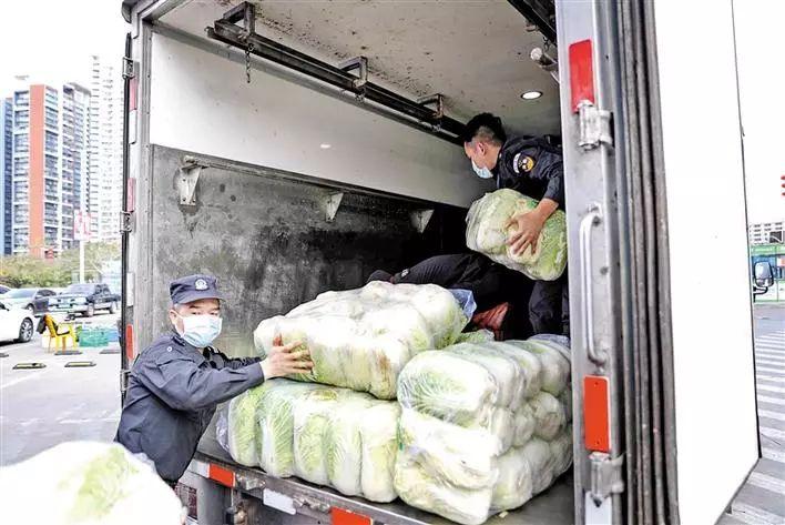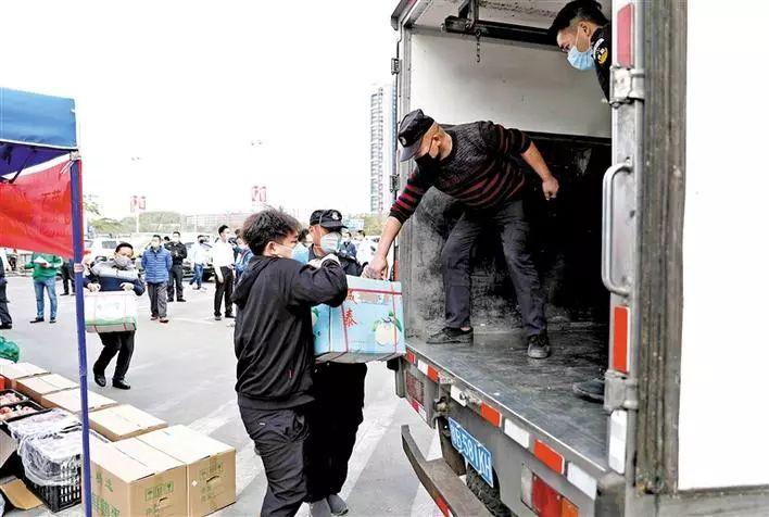 2月3日下午,在清湖农贸市场,市场工作人员正在忙着将11吨农副产品搬上货车。“目前我们区属医疗单位是全员开工,不少一线医护人员是24小时三班倒,食堂对农副产品的需求量确实比较大。”据龙华区卫生健康局工作人员介绍,这11吨农副产品将会直接送往6家区属医疗卫生单位,其中包括龙华区人民医院、龙华区中心医院、龙华区妇幼保健院、龙华区疾病预防控制中心、龙华区慢性病防治中心和龙华区卫生监督所,为防疫一线充实后勤保障。