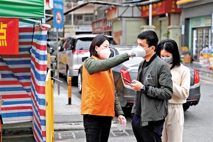 临时党支部构建起“区直机关—街道—社区”三级联防机制,在重要区域增设了社区监测点。目前,民新社区体温监测点47处,各体温监测点实行24小时专人值班值守。
