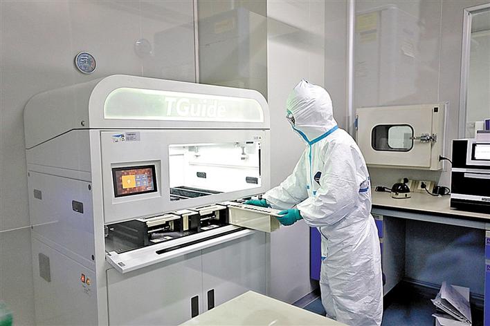 核酸提取 区疾控中心检测人员使用全自动核酸提取仪进行核酸提取。