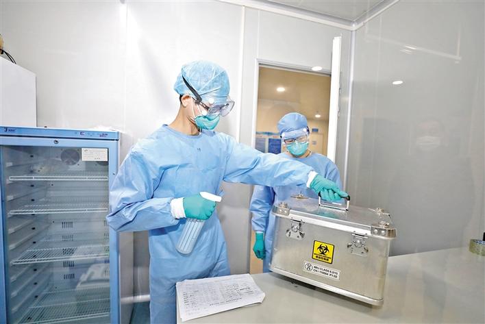 样本消毒 区疾控中心检测人员接收样本时对运输箱的外表面进行消毒。