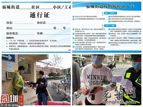 街道制作下发20万张人员和车辆的“通行证”,对所有城中村、物业小区和工业区均实施分类严密管理,凭卡出入本居住地,禁止外来人员和外来车辆进入。为防造假,出入证必须与身份证一起使用,为此还专门给所有居民配了一个卡套,方便居民携带。同时为了让卡口工作人员能快速识别节后首次返深和没有出入证的辖区居民,专门开发了手机小程序。