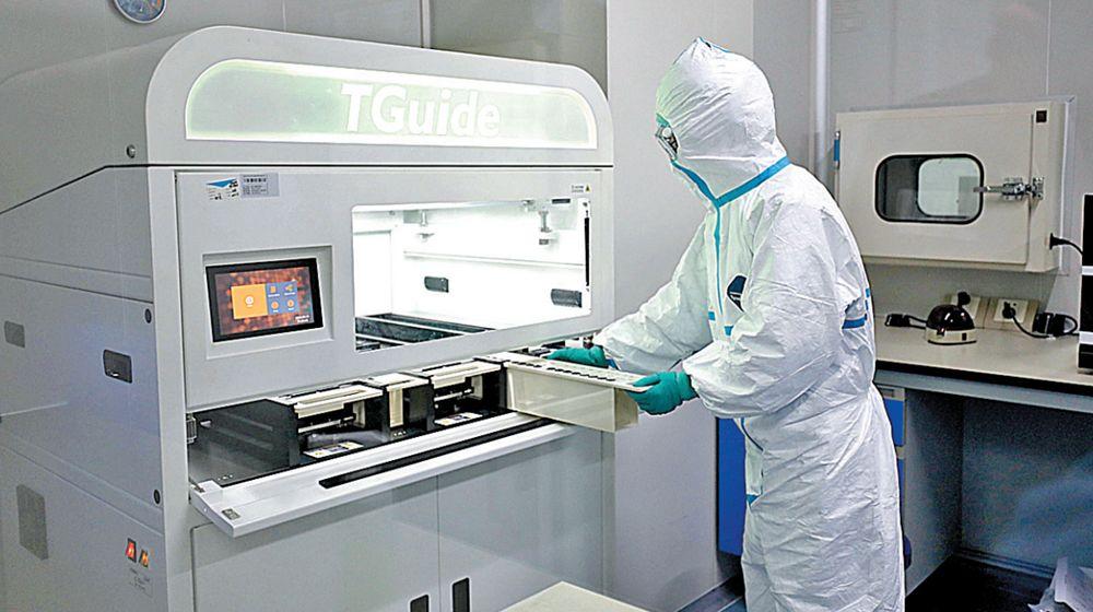 区疾控中心检测人员使用全自动核酸提取仪进行核酸提取
