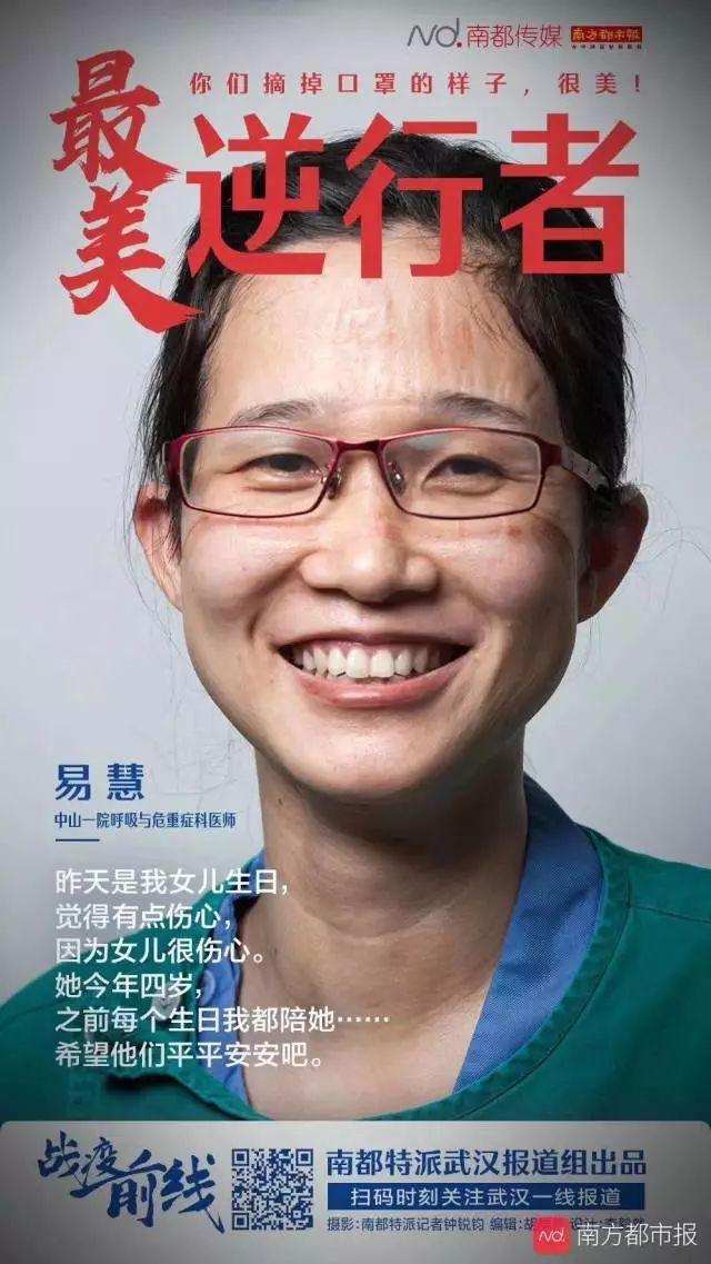 姓名:易慧单位:中山大学第一附属医院职位:呼吸与危重症学科主治医师我做了防护措施后现在比以前好多了!以前没有敷料的时候每个夜班几乎都有护士鼻梁破掉,然后不久又要继续上班,很痛。防护服的体验是,首先效率低了很多,其次比较痛苦,像现在天气稍微暖和,就会很热,容易起雾。现在作息比较颠倒,我们今晚是个上夜班,洗漱完就三四点了,然后明天(第三天)就是一个白班,凌晨五点就得起床,所以就……挺痛苦,我白天要补觉,晚上也要早点睡否则就起不来。接下来又是一个下夜班,就是凌晨一点到七点,所以生物钟紊乱。昨天是我女儿生日,昨天觉得有点伤心,因为女儿生日很伤心。她今年四岁,之前每个生日我都陪她,昨晚她很不高兴,一直哭,所以我的情绪也上来了……希望他们平平安安吧,到时候疫情过去我们平安回家,活着回去就行了。