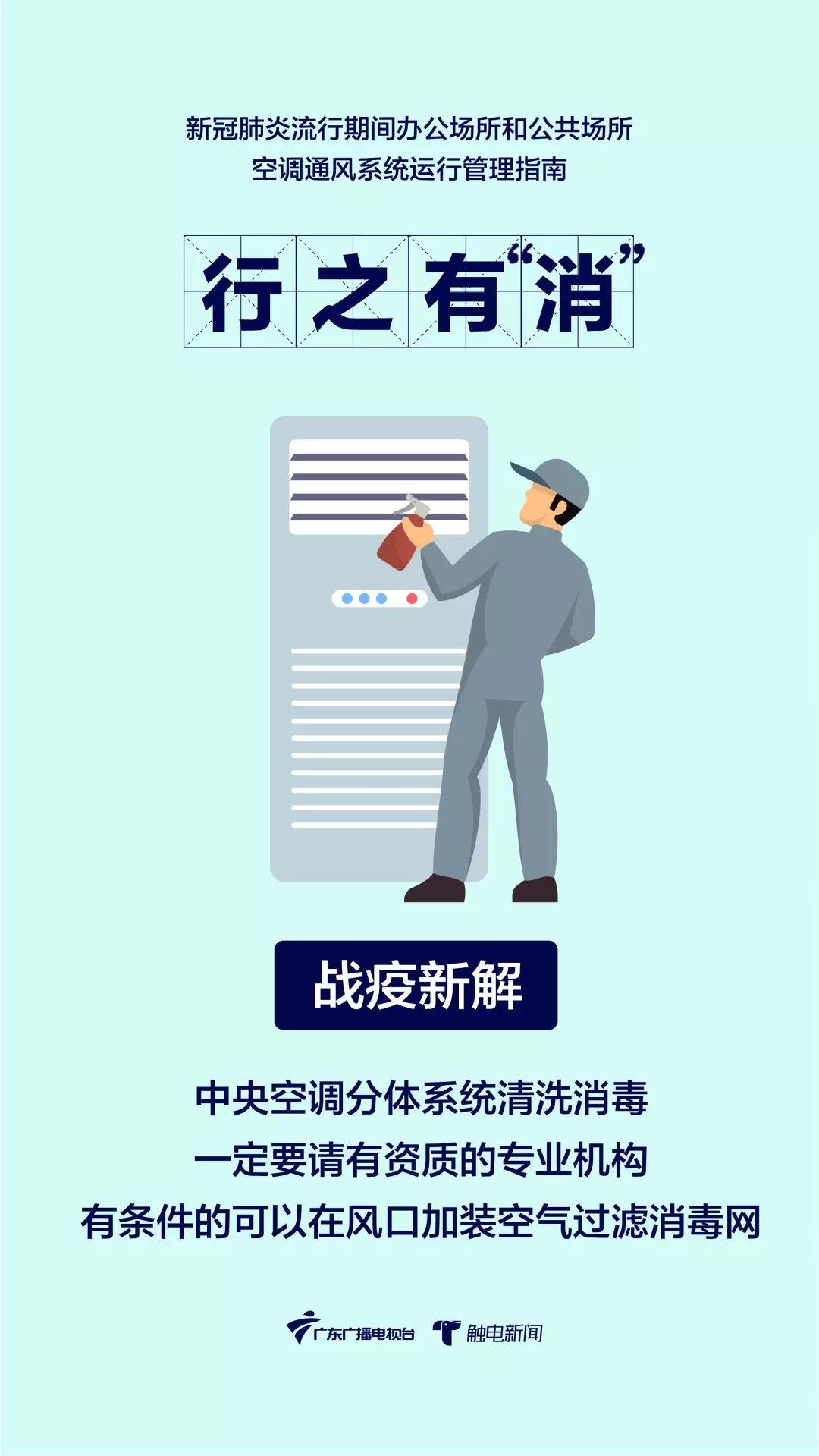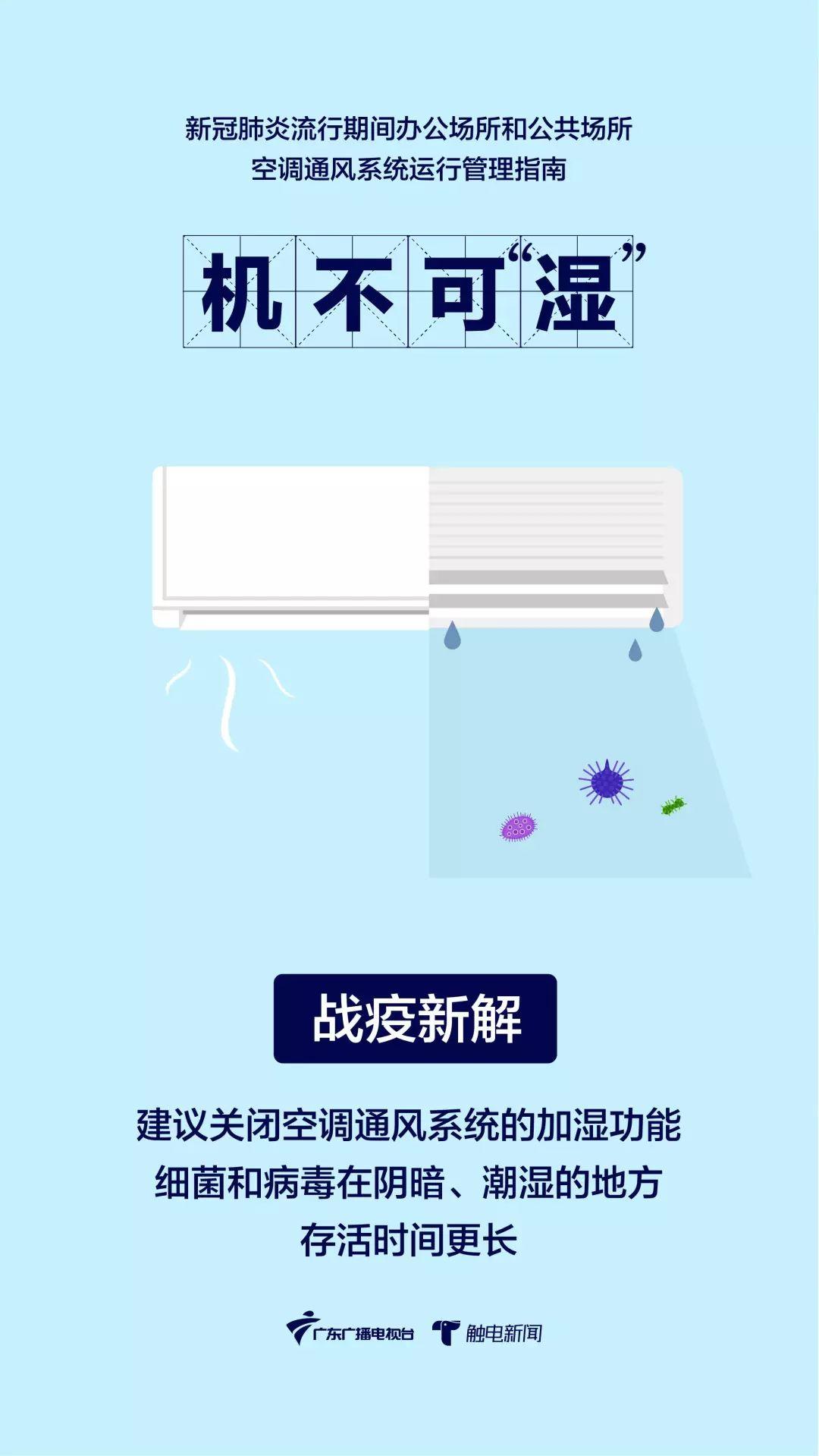 一文读懂随着企业有序复工复产,商场、写字楼等人员流动逐渐增强,公共场所使用中央空调是否会造成新冠病毒传播成为大家担忧的问题。使用中央空调该注意什么,如有同事确诊能否继续使用。疾病预防控制局2月12日发布的《新冠肺炎流行期间办公场所和公共场所空调通风系统运行管理指南》(以下简称“《指南》”)指出,当场所发现疑似、确诊新型冠状病毒感染的肺炎病例时,应当停止使用空调通风系统