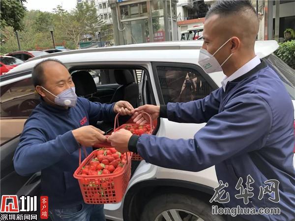 ▲大水坑社区大一村绿道口草莓园老板周伟在满是消毒水味的空气里,为防疫一线的工作人员带来草莓馨香。他跑了两趟,留下了16篮草莓,说了句“大家辛苦了”,却忘记说自己是谁。