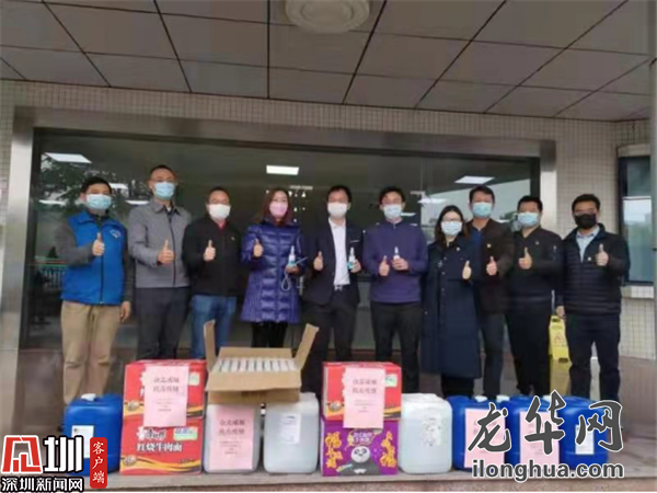 ▲2月11日,深圳市特想文化有限公司、深圳市丰盛福实业有限公司向街道捐赠20桶84消毒液、2桶酒精等一批防护物品和补给食品。