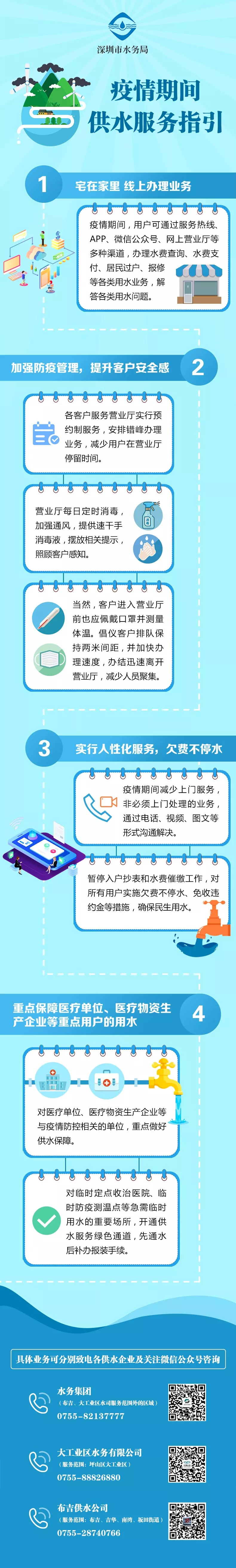 近期,为做好新型冠状病毒疫情防控,大家都坚持“宅在家,不聚会、不串门、不走亲、不访友”如果着急要去线下办理业务怎么办深圳市水务局疫情期间供水服务指引来啦!!隔断亲密接触,不会隔断供水服务水务君贴心的送上“无接触”办理供水服务指南确保我们正常用水