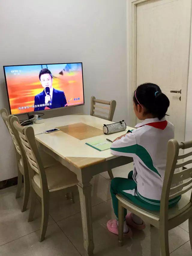 体育东路小学和杨箕小学的学生在家屏幕前上课。杨嘉 摄