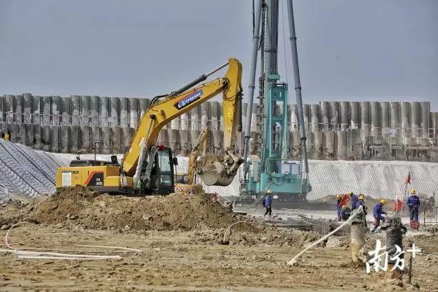 深中通道东人工岛项目工地现执行全封闭管理,减少人员外出流动,并严格实施项目外地人员返工隔离14天措施。南方日报记者 石磊 李赫摄 影报道