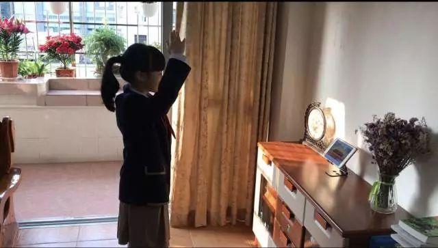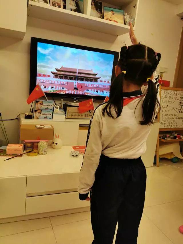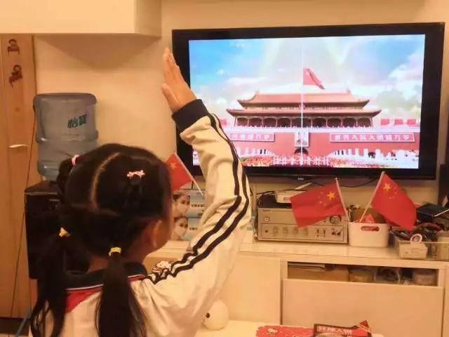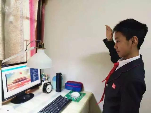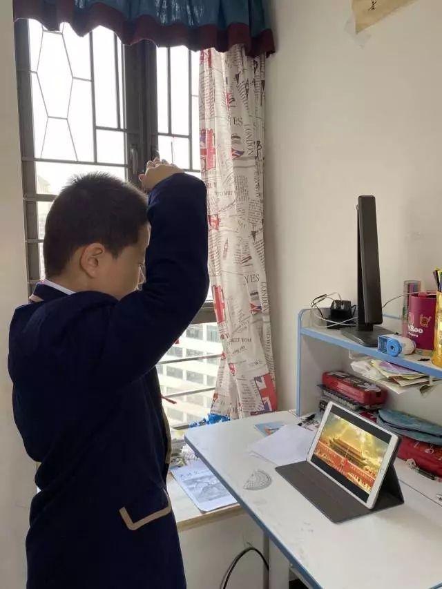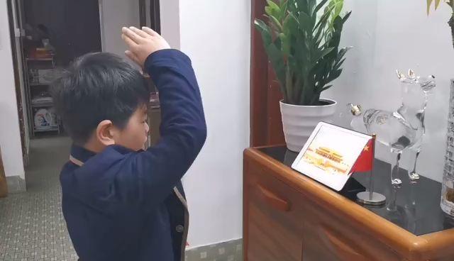 体育东路小学和杨箕小学的学生开始上网课,学生在进行升国旗仪式。杨嘉 摄