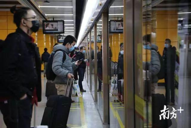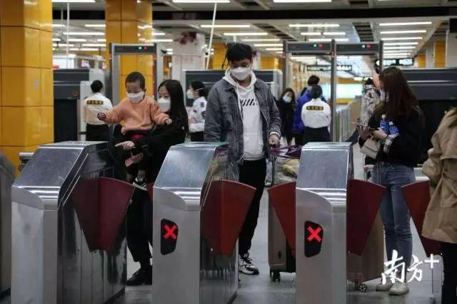 2月17日,广州地铁2号线广州南站入口处,人流量虽然还不算多,但与前两三周相比,还是有明显增加。吴伟洪 摄