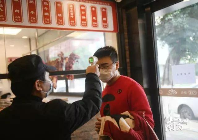 2月17日,汕头八合里海记牛肉店广州骏景店开门营业,上午11点,第一位顾客上门购买牛肉打包回去制作。受疫情影响,店里复工后的下单量仍较少。南方日报记者 肖雄 黄鸿基 摄