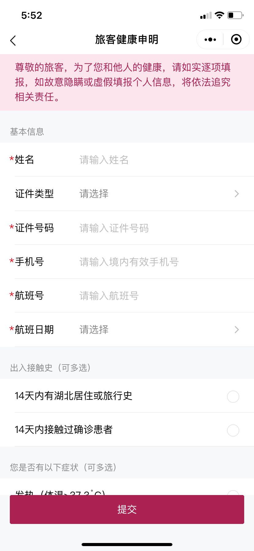 为进一步做好新冠肺炎疫情防控加强联防联控和精准防控根据疫情防控工作需要和相关文件要求2月16日起经由深圳机场乘坐国内进出港航班的旅客需通过深圳机场微信小程序或现场扫码自主申报健康状况