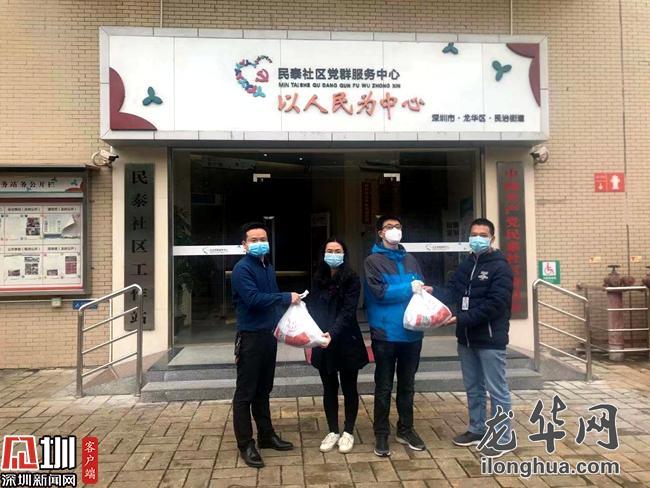 2月8日,民治残联燕燕小朋友的家属缪学胜、黄松君夫妇爱心捐赠口罩约2600个。2月15日,樟坑社区一便利店老板向卡点一线工作人员赠送矿泉水20箱、方便面10箱。民治辖区有约720个体温监测点,对体温检测仪的需求量比较大。不少居民纷纷拿出捐出自己家中的测温仪,一夜之间就募集到测温仪180个。在莱蒙水榭春天小区,物业承担测体温、送蔬菜、清垃圾、环境消杀等很多工作,周到的防疫工作业主们看在眼里,暖在心里。小区业主们自发组织捐款,筹集近20万元物资,用于物业一线人员的补贴发放和防疫物资购买。