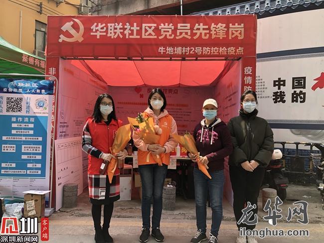 自新冠肺炎疫情发生以来,在龙华街道的各个角落,一线巾帼工作者们积极做好流动人员的疫情防控工作,排查登记返深人员的身体状况,成为防控疫情一线一抹最美的身影,也牵动着无数爱心人士的心。龙华街道花卉协会主动联系街道妇联,把最美的鲜花捐赠给奋战在一线的巾帼工作者,带去社区居民美好的祝福。