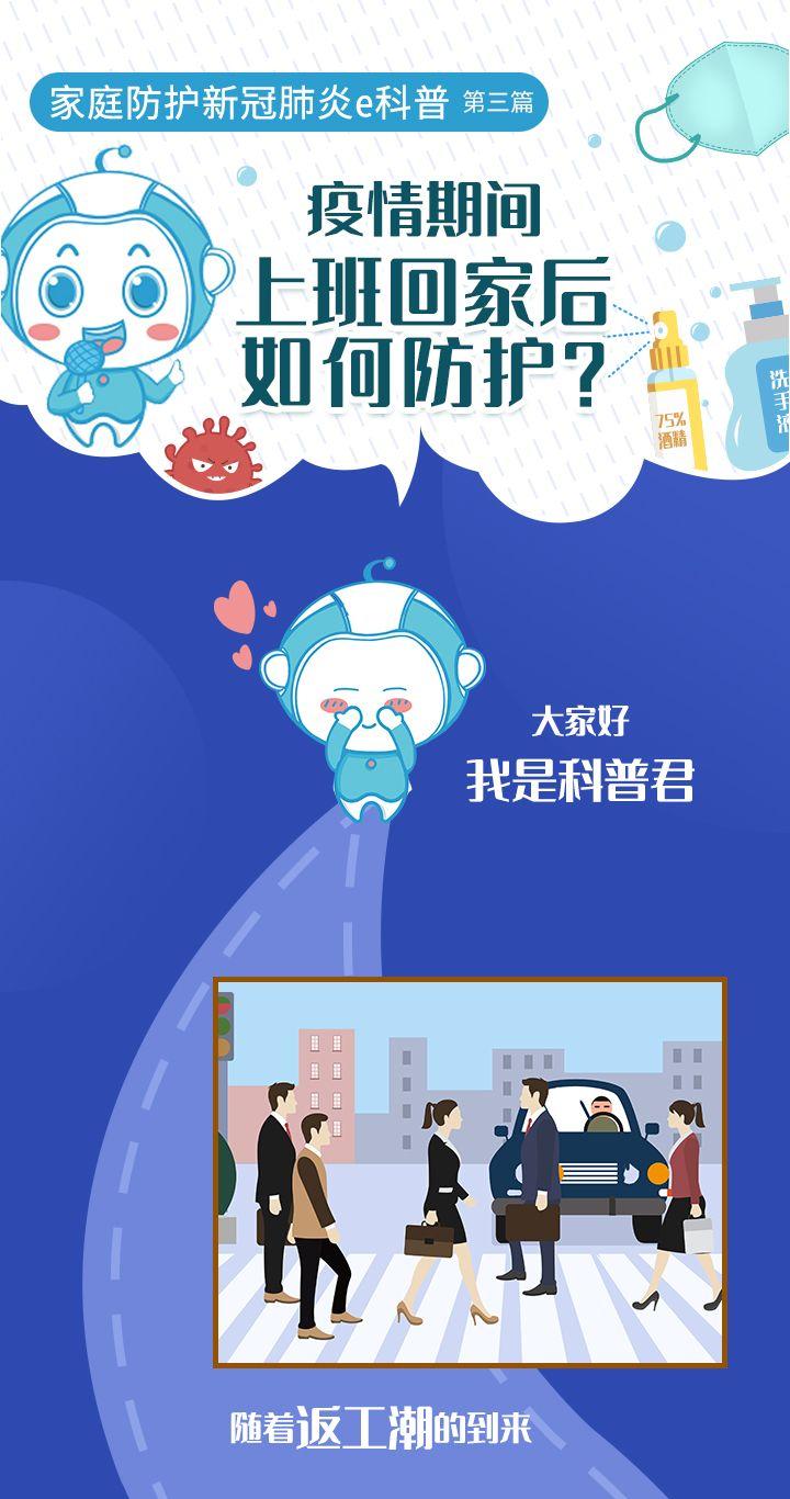 这段时间,大家都陆续复工了。上班期间,工作和防护都要做好;下班回家后,防护措施也不能掉以轻心。《家庭防护新冠肺炎e科普》第三篇“疫情期间,上班回家后如何防护?”就和大家说说,回家后的正确消毒方式,做好科学防护,减少病毒传播。