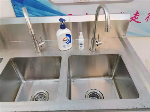 3、洗手台同时配备洗手液及酒精喷雾,酒精喷雾可对水龙头把手进行消毒,避免交叉感染。