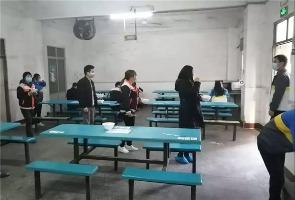 1、排队领餐,拉开间隔,一人一盒,“孤独”就餐,快吃快走。