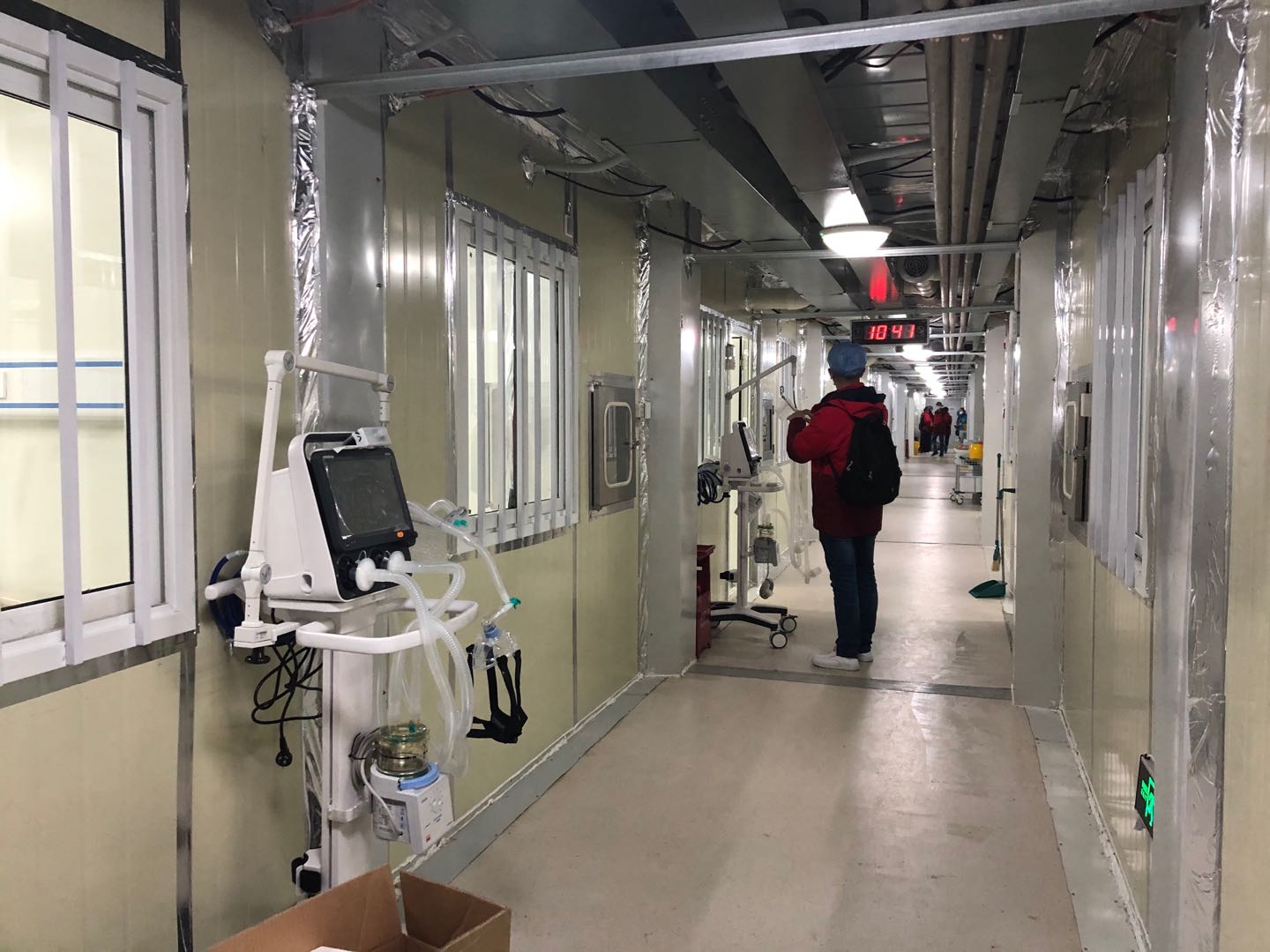 2月1日晚,武汉雷神山医院隔离病区首个完整病房样板正式完成,病房面积16.5平方米(3米×5.5米),分为卫生间、缓冲区和病房区三大区域。