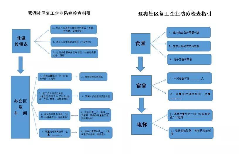 鹭湖社区自主编制《鹭湖社区复工企业防疫检查指引》,要求计划复工复产的企业必须落实防控机制到位、员工排查到位、设施物资到位、内部管理到位,遵守一企一造册、一厂一预案、一产一培训,安全有序复工复产。