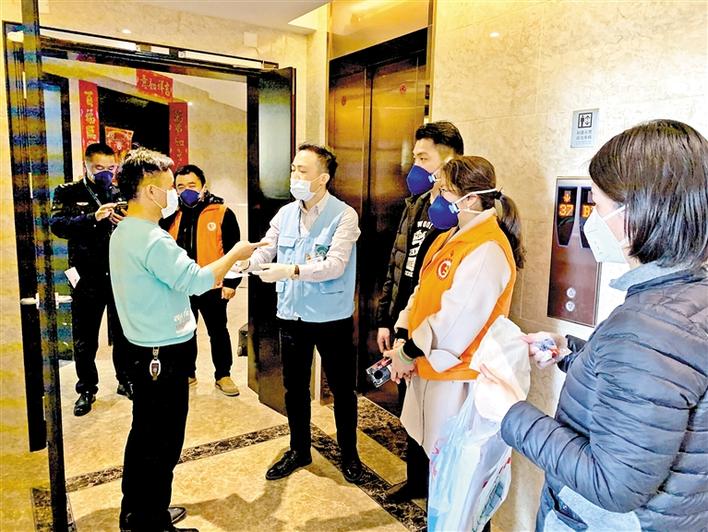 龙平社区工作人员上门,为返深居民进行体温测量。