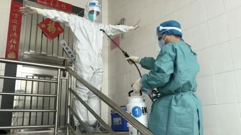 医生们穿着防护服在一线与病毒抗争