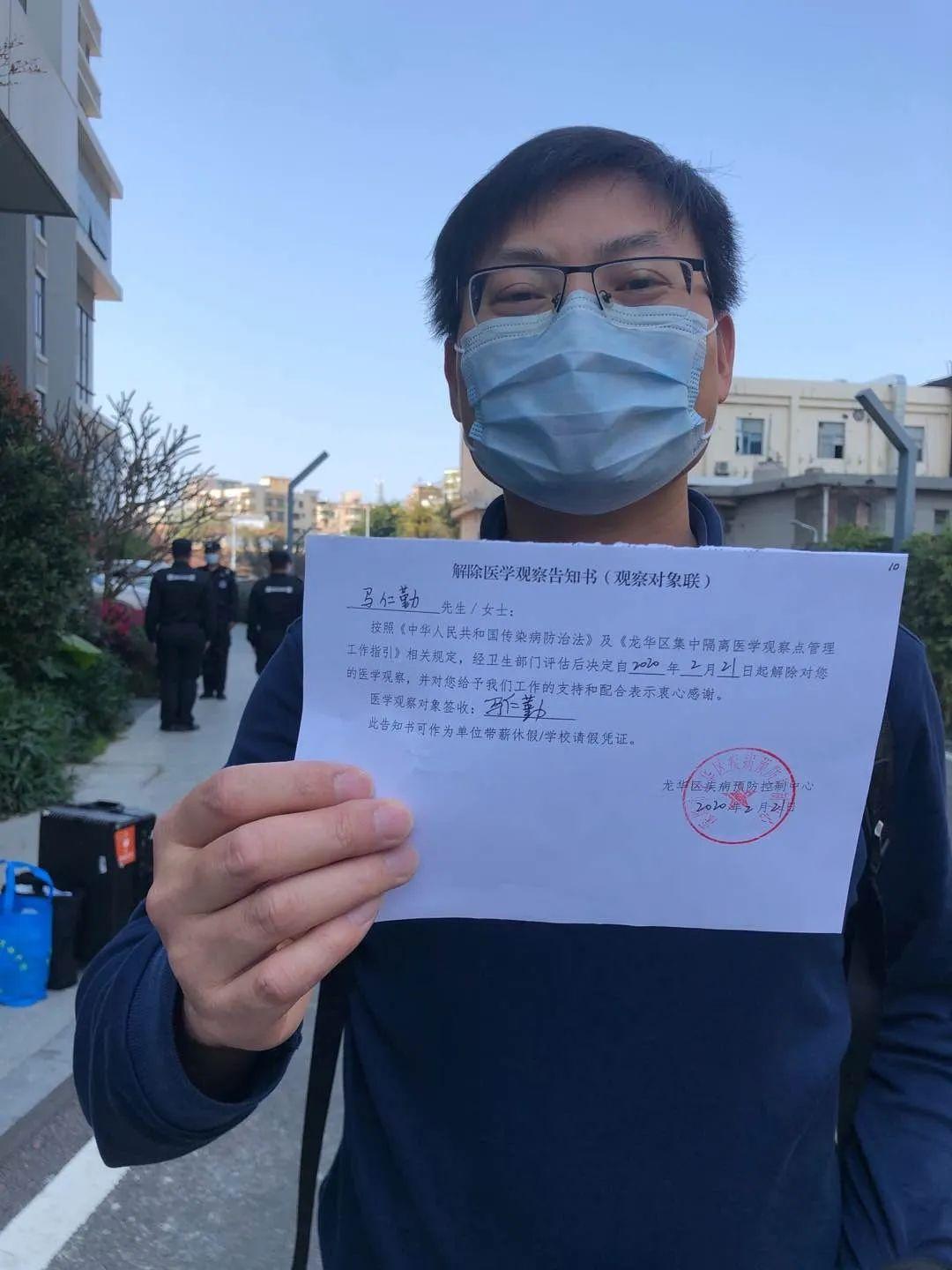 “我们回到龙华后得到了区委区政府的高度重视,区各部门和医护人员在14天的隔离期间内,全程为我们提供了很好的医疗和生活保障,有一种很强的被保护的感觉。”马仁勤说道,“我们终于能安心休息了。”