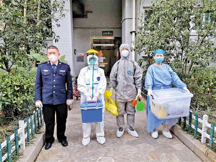 在手术衣、防护服、护目镜、医用口罩、手套鞋套层层保护下,他们拎着采样和消杀工具,认真负责完成好每一名留观人员的采样排查。他们有一个共同的名字——抗疫中的龙华采样人。