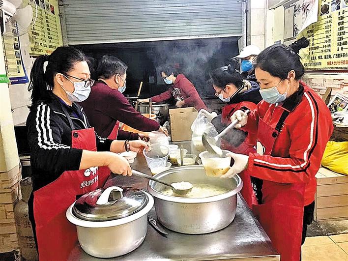 “深夜食堂”的夜宵做好了,大家忙着打包。