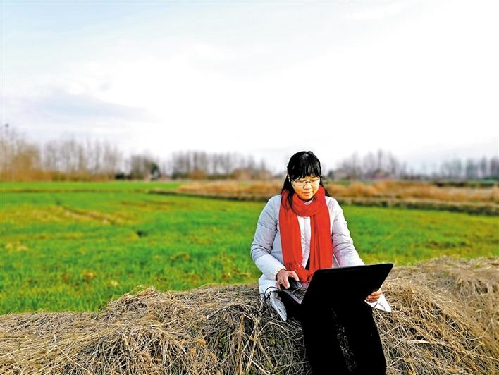 夏良英带着电脑来到离家几里地的一处电信基站附近上直播课。