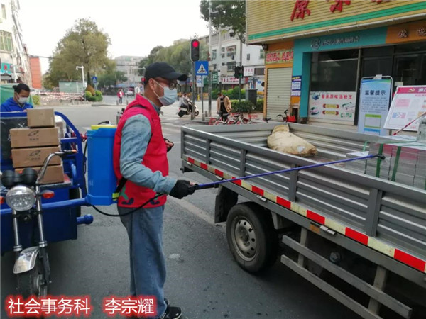 “我90后,身体底子好,不用睡那么多”。值完夜班的岗,休息小会的李宗耀同志又背起了喷雾器,给片区的岗亭、公共场所、来往车辆等进行消毒。问到为什么又值岗又消杀,这个年轻的小伙子狡黠地一笑,说“站岗是主业,消杀是兼职”。李宗耀值勤的卡点,是工业园、居住楼复合区域,人流、车流量都较大,日均测温人数达600余人次,在这个岗位值勤的人员,基本上是寸步不移、“枪”不离手。