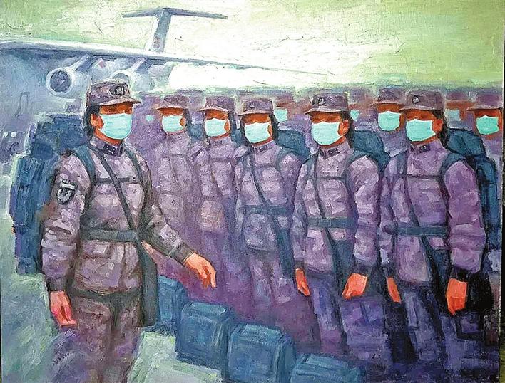 232幅(组)作品里,数美术作品投稿的数量最多。这73幅(组)作品,有的是水彩画,有的是油画,有的是插画,还有电脑绘画、国画和钢笔淡彩画等。虽然画种不一,但是表达的核心意思却大致相同,每一幅画作里无不诠释着致敬、驰援、逆行的主题和情感。