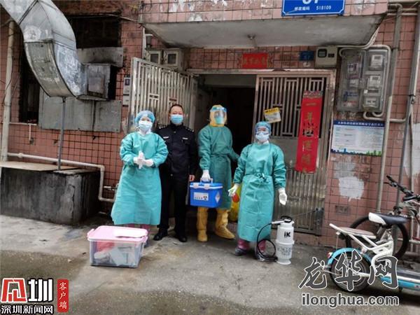 网格员吴志忠协助医务人员上门对居家隔离人员进行核酸检测。