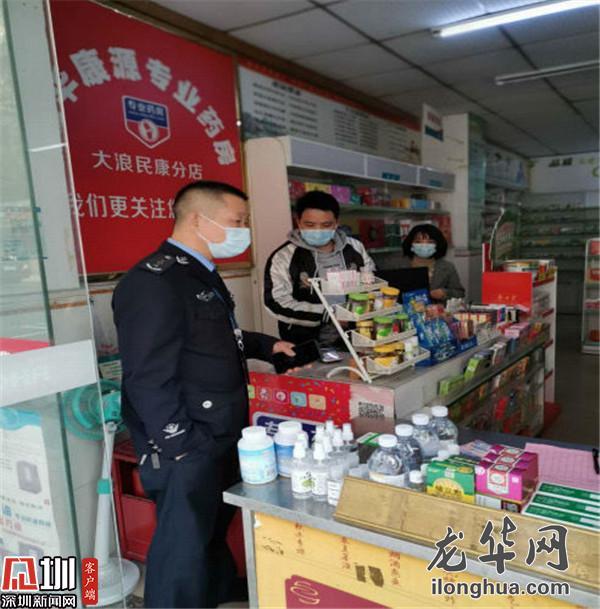 网格员郭惠洲向药店了解居民购买治疗发热、咳嗽类药品的情况。
